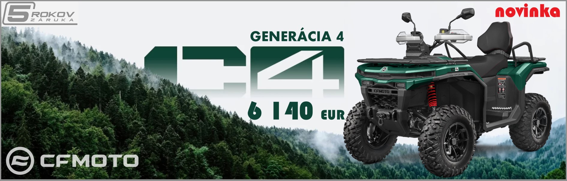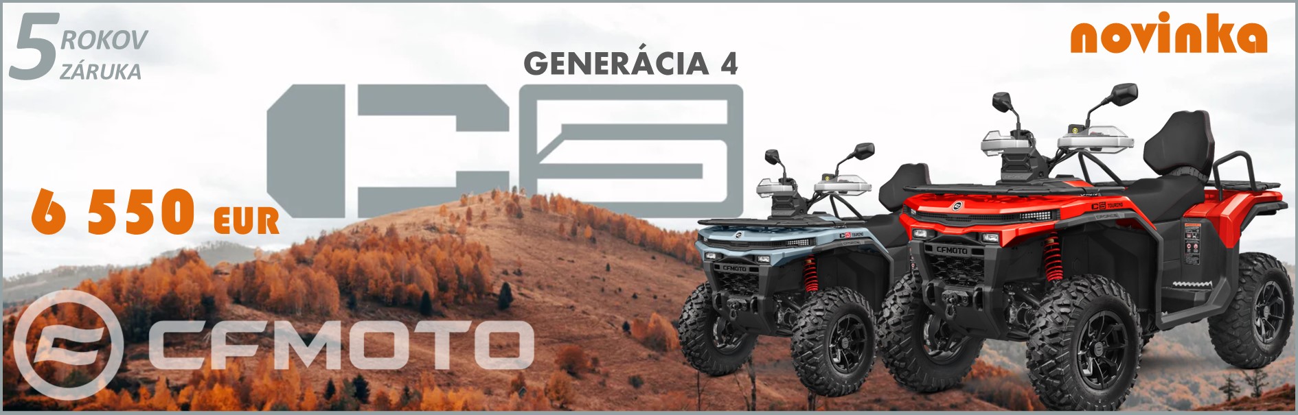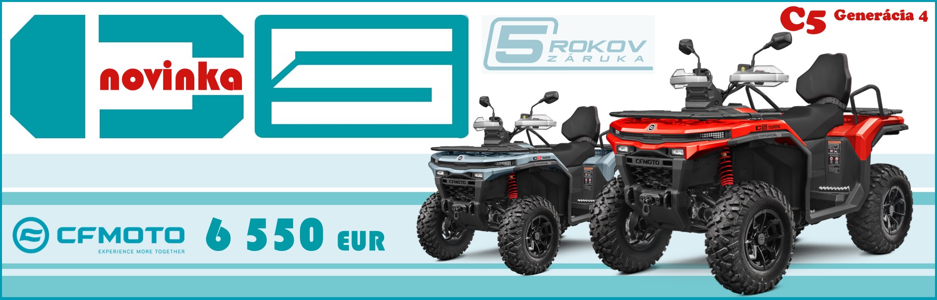 CFMOTO Gladiator C5 G4 vybrúsená k dokonalosti, pripravená na najtvrdšiu prácu, zábavná, úsporná a jedinečná. Taká je nová generácia legendárnej štvorkolky Gladiator C5, najpredávanejšej štvorkolky na českom…